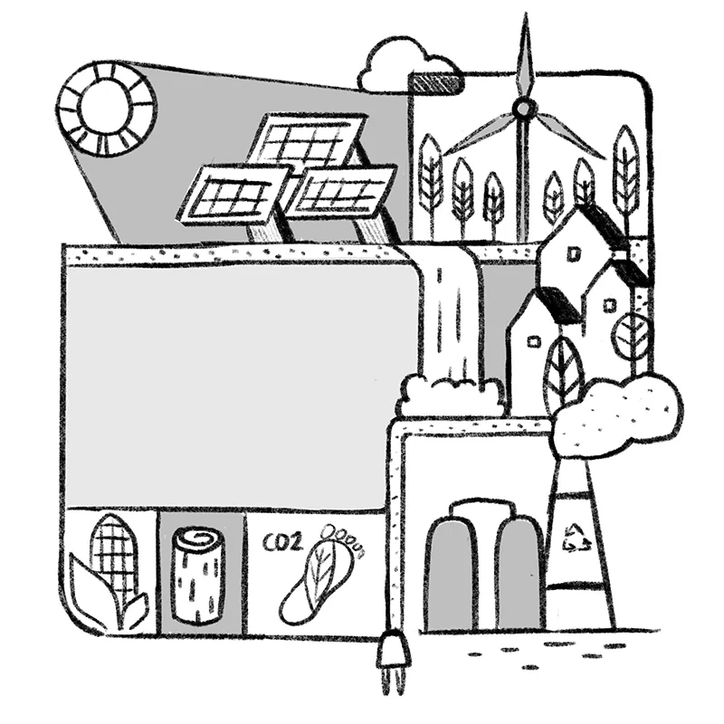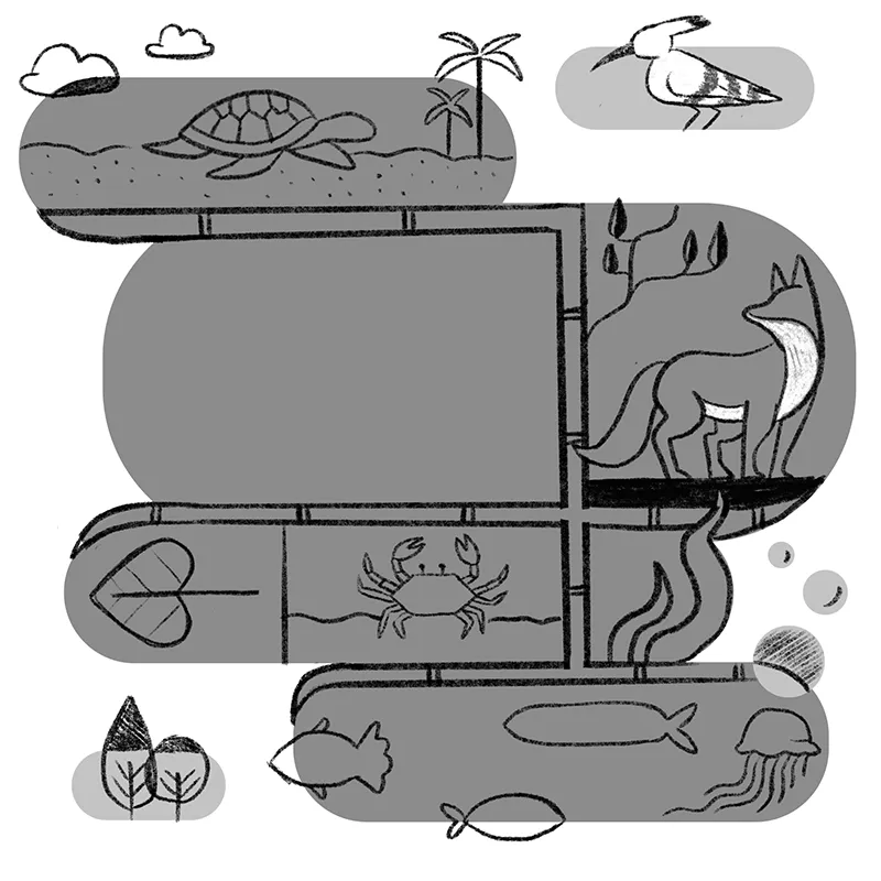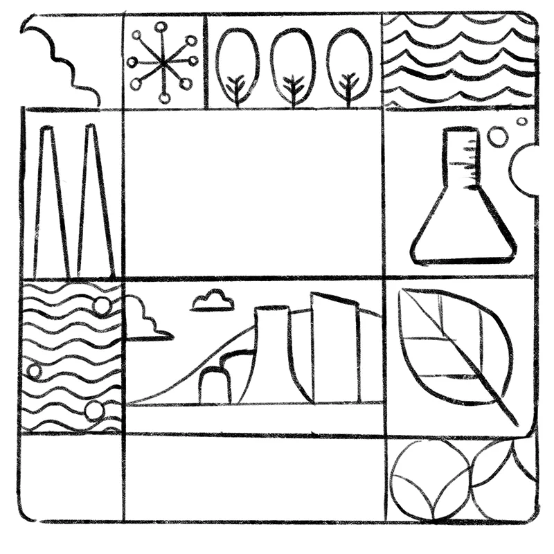 The visual concept draws inspiration from nature, animals, and water-related processes, distilled into clean, geometric forms - aiming to communicate complex systems with clarity and visual appeal.