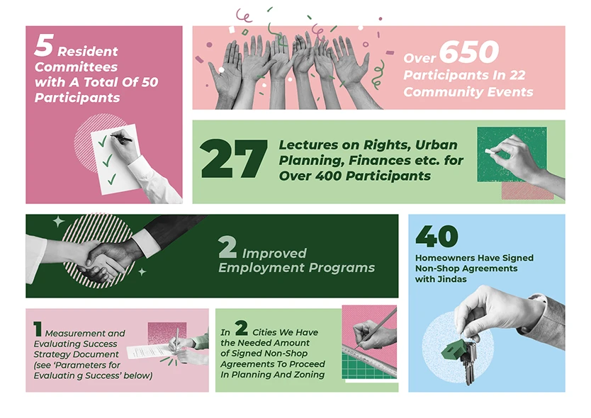 Jindas is a nonprofit organization focused on promoting social mobility through community-driven urban renewal in Israel’s suburbs. As part of the design for their annual report, we created a series of illustrations using a collage-based visual language featuring images of people and hands to evoke a sense of warmth, humanity and community, alongside diverse depictions of buildings and homes. The concept revolves around the idea of "home" and protection.