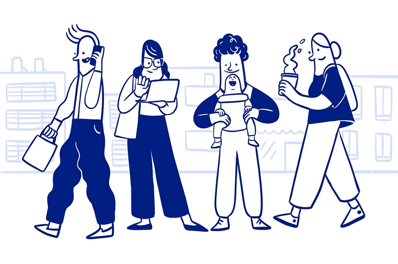 Konektu is an insurance company that delivers tailor-made policies based on individual needs through a fast, simple and personalized process. The illustrations for their website were made with a concept that was inspired by the idea of human connection within communities - people helping each other across different situations, formats and places.