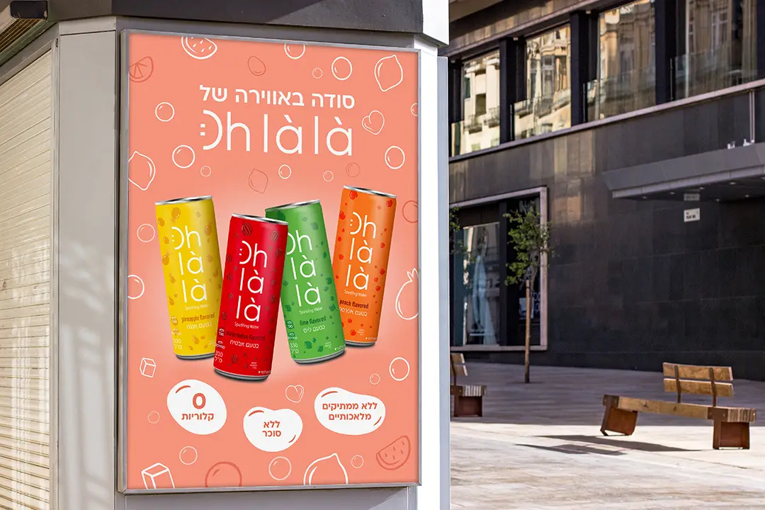 Ohlala is a sugar-free soda brand bursting with fruity flavor and fizzy fun. We developed a fresh, illustrated brand identity that captures the carefree spirit of summer, featuring hand-drawn fruits and playful bubbles. The illustrated branding is bright, juicy and full of energy that manifested in various product designs like posters, supermarket shelves and social media publications.