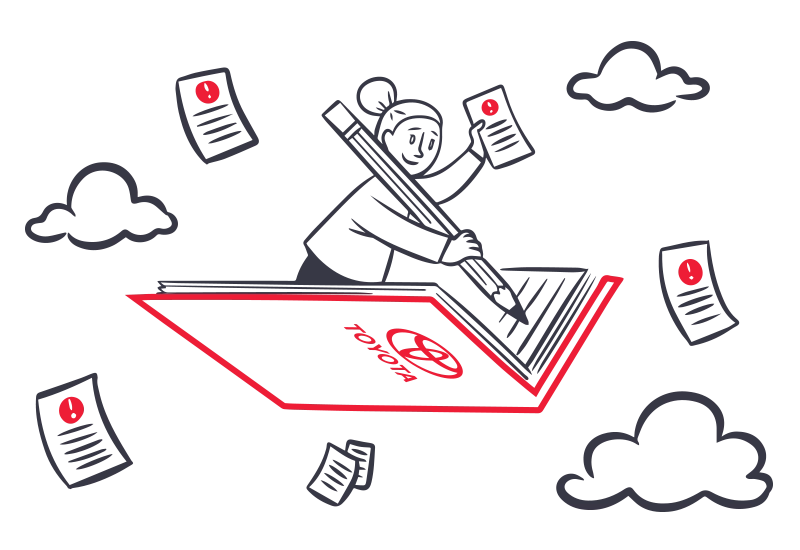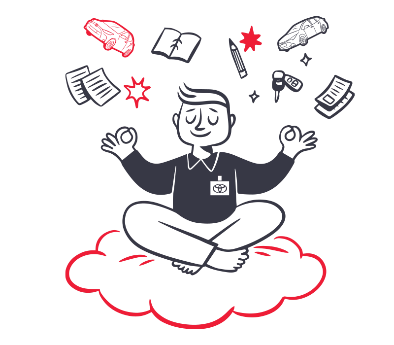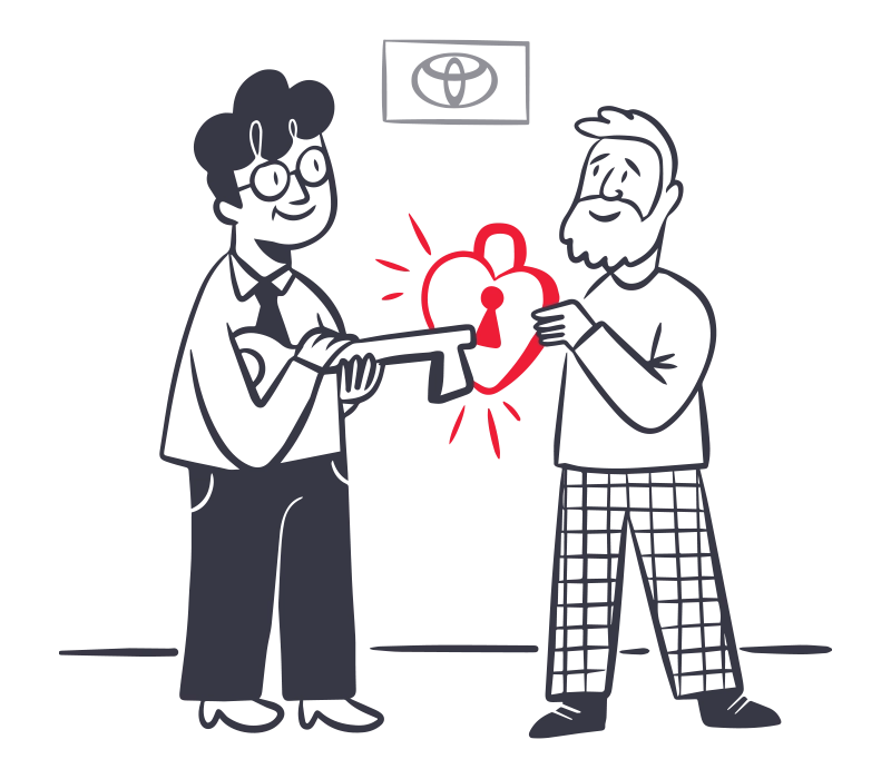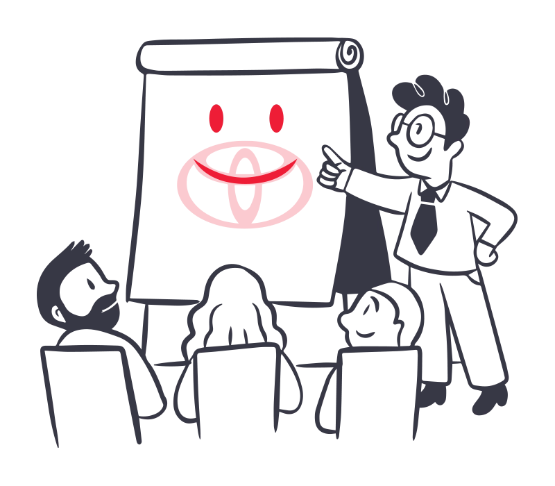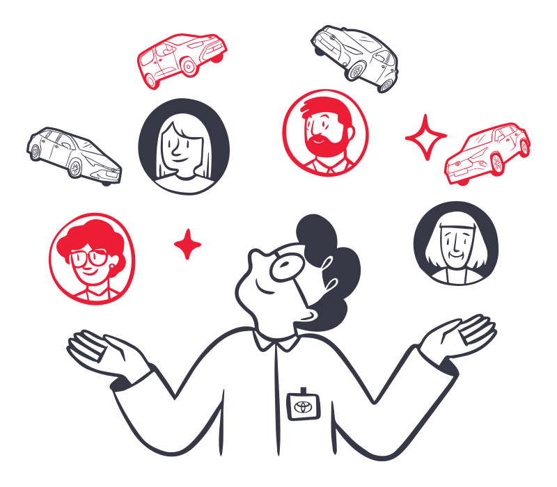Toyota approached us to create illustrations for a book dedicated entirely to sales employees at their dealerships, featuring employee quotes about customer service and insights from customer interactions. The illustrative style is light, minimalist and human, yet conveys a professional, business-like feel, all within Toyota’s color palette.