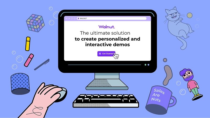 Walnut empowers marketing teams with a user-friendly platform for creating personalized product demos quickly and efficiently. We created the art for a fun, animated promo video that highlights the platform's magic with humor and personality. At the heart of the story is a classic tech marketing guy, struggling to build an engaging demo. Just when all hope seems lost, he discovers Walnut and everything changes. Happy clients, smooth process, zero stress.